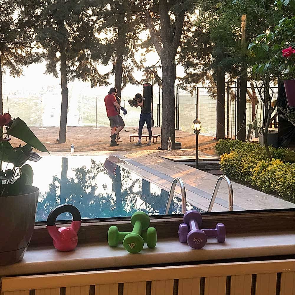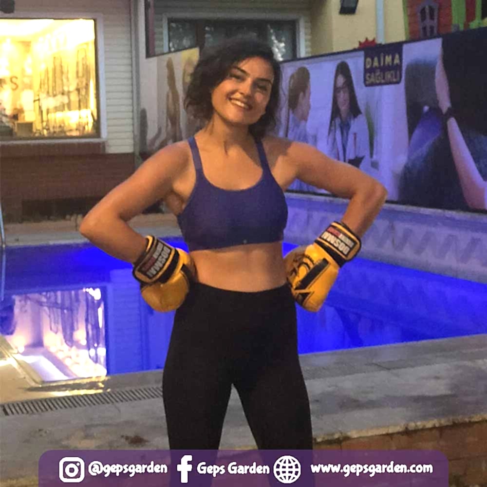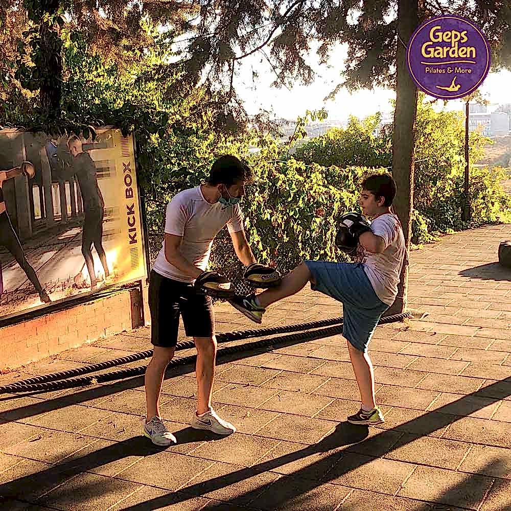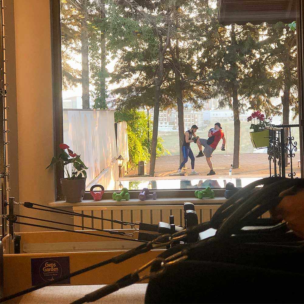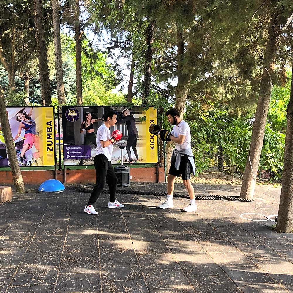 Geps Garden'ın çam ağaçları altındaki bahçesinde Milli sporcu eğitmenimiz eşliğinde